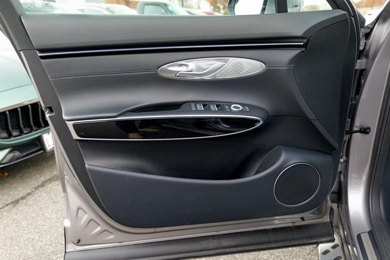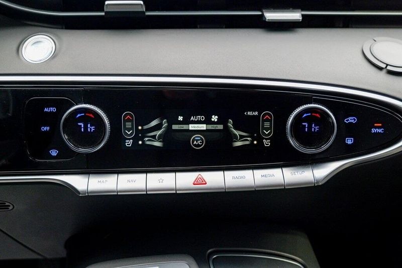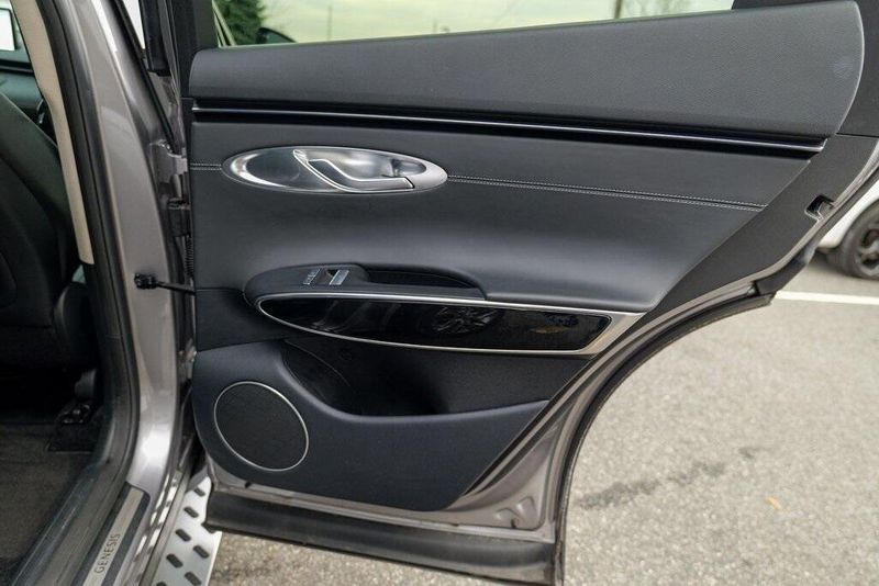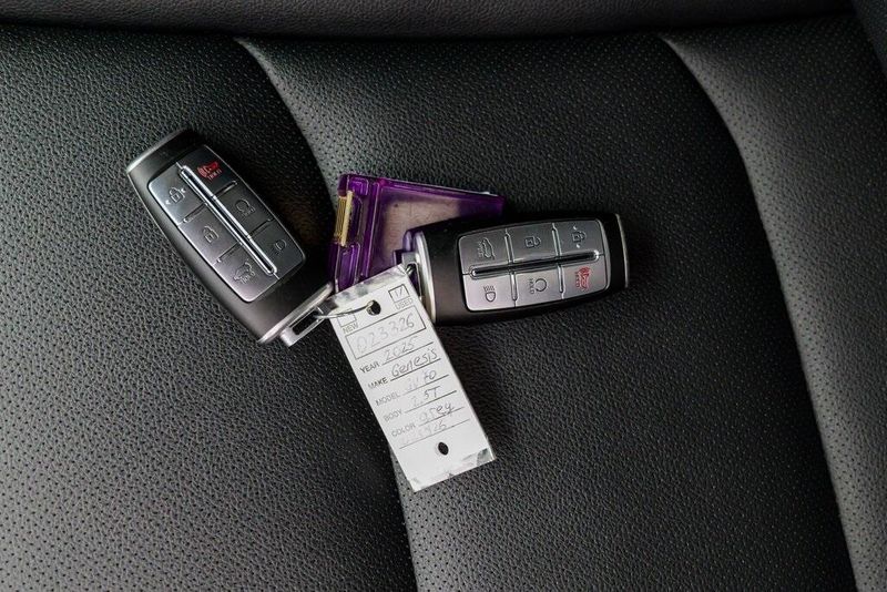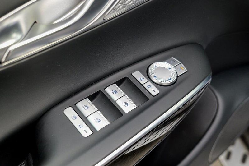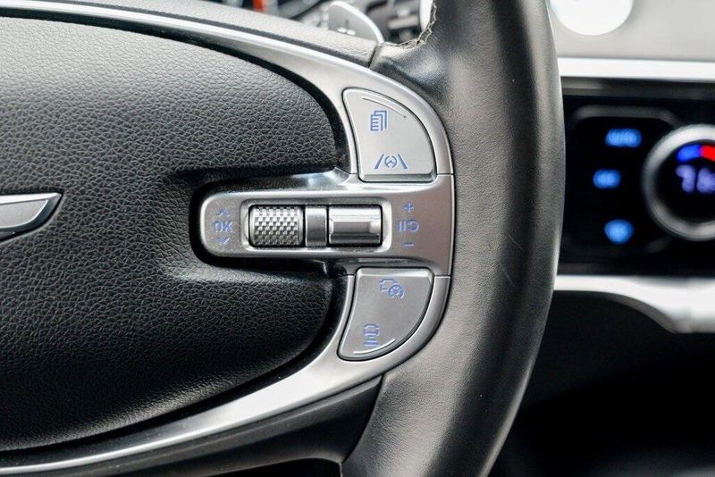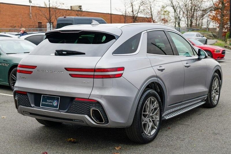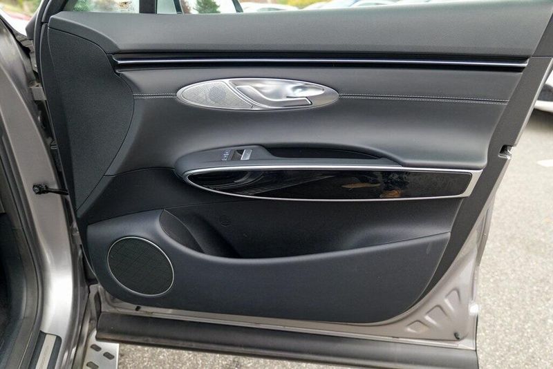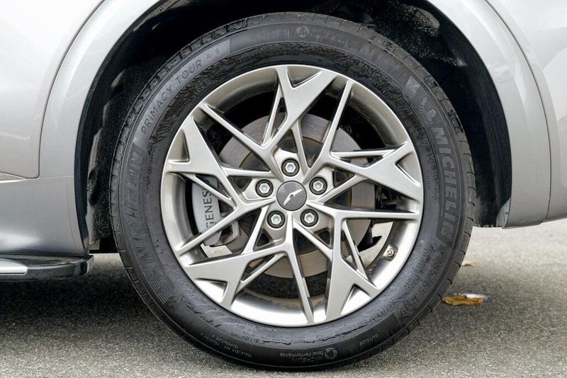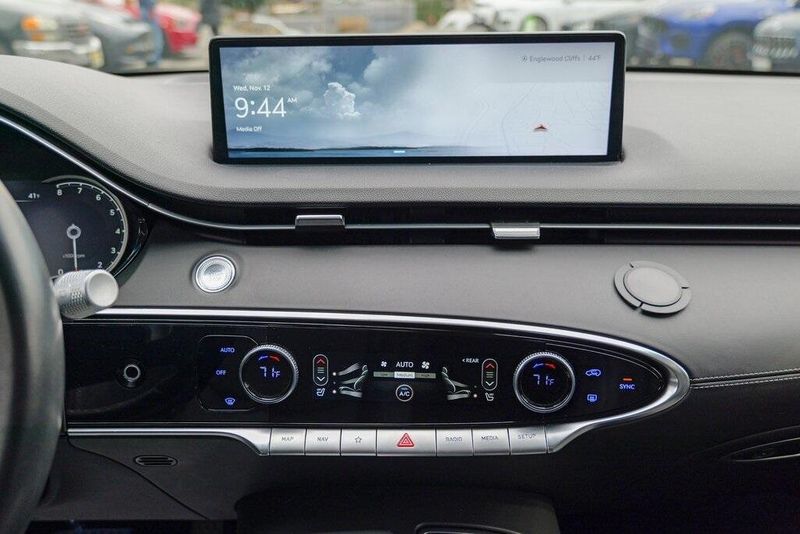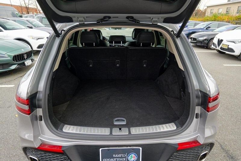 This GV70 2.5T is nicely equipped with GV70 2.5T, 4D Sport Utility, 2.5L DOHC, 8-Speed Automatic with SHIFTRONIC, AWD, Savile Silver, Black/Black Artificial Leather, 4-Wheel Disc Brakes, 9 Speakers, ABS brakes, Air Conditioning, Alloy wheels, AM/FM radio: SiriusXM, Android Auto & Apple CarPlay, Anti-whiplash front head restraints, Auto High-beam Headlights, Auto-dimming Rear-View mirror, Automatic temperature control, Brake assist, Bumpers: body-color, Delay-off headlights, Driver door bin, Driver vanity mirror, Dual front impact airbags, Dual front side impact airbags, Electronic Stability Control, Emergency communication system: Genesis Connected Services, Exterior Parking Camera Rear, Four wheel independent suspension, Front anti-roll bar, Front Bucket Seats, Front Center Armrest w/Storage, Front dual zone A/C, Front reading lights, Fully automatic headlights, Garage door transmitter: HomeLink, Heated door mirrors, Heated Front Bucket Seats, Heated front seats, Illuminated entry, Knee airbag, Leather steering wheel, Leatherette Seating Surfaces, Low tire pressure warning, Navigation System, Occupant sensing airbag, Outside temperature display, Overhead airbag, Overhead console, Panic alarm, Passenger door bin, Passenger vanity mirror, Power door mirrors, Power driver seat, Power Liftgate, Power passenger seat, Power steering, Power windows, Radio: 14.5'' Navigation System w/AM/FM/HD Radio, Rain sensing wipers, Rear anti-roll bar, Rear Parking Sensors, Rear reading lights, Rear seat center armrest, Rear window defroster, Rear window wiper, Remote keyless entry, Security system, Speed control, Speed-sensing steering, Speed-Sensitive Wipers, Split folding rear seat, Spoiler, Steering wheel mounted audio controls, Tachometer, Telescoping steering wheel, Traction control, Trip computer, Turn signal indicator mirrors, Variably intermittent wipers, and Wheels: 19'' Dark Hyper Silver Alloy.